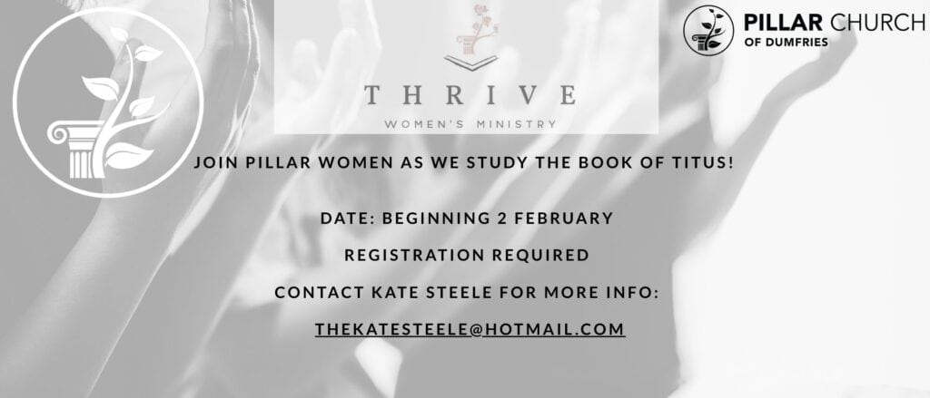 Studying the Book of Titus. Join us for four weeks as we study this Pauline epistle together. Be equipped to read and study God’s Word, grow in our relationships, and carry each others burdens through prayer.